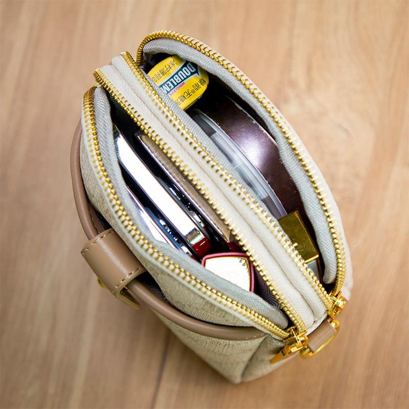 Dual Shoulder Straps: Comes with a wide fabric strap and a matching leather strap, both detachable and adjustable for shoulder or crossbody wear.
